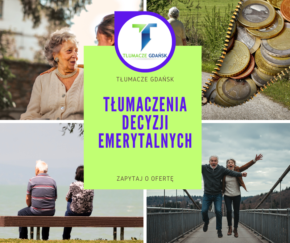 Tłumaczenie przysięgłe dokumentów emerytalnych jest zwykle konieczne, aby bez problemu przejść przez procedury urzędowe, w tym również bankowe. Biuro ,,Tłumacze Gdańsk’’ może Państwu pomóc, jeśli np. istnieje potrzeba przetłumaczenia zawiadomienia o przyznaniu emerytury na język polski w celach uniknięcia podwójnego opodatkowania w banku. Wykonujemy tłumaczenia przysięgłe dokumentacji emerytalno-rentowej z języka angielskiego, francuskiego, niderlandzkiego,  niemieckiego i wielu innych języków.